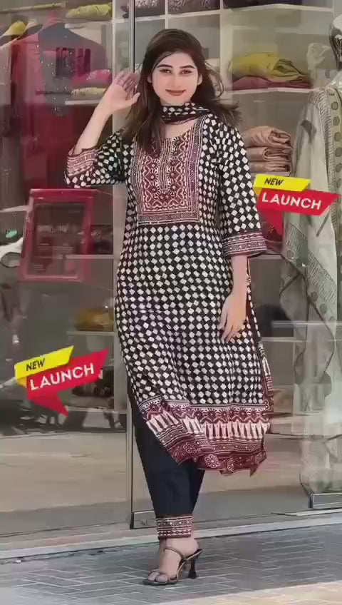 Kurti Suit Set seems to be a party wear outfit made from maslin fabric with Maslin Duptta.(3-Pair)