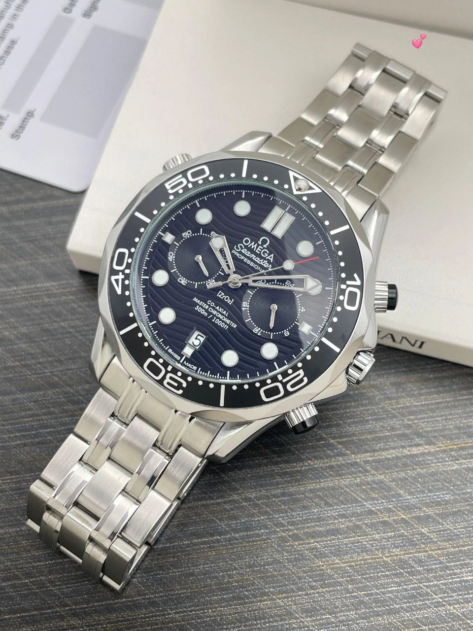 Add a bold and classic touch to your look with this Omega Seamaster style stainless steel watch for men. Designed with a clean black dial and a strong metal strap, this watch is a great match for office wear, casual outfits, and party looks.
