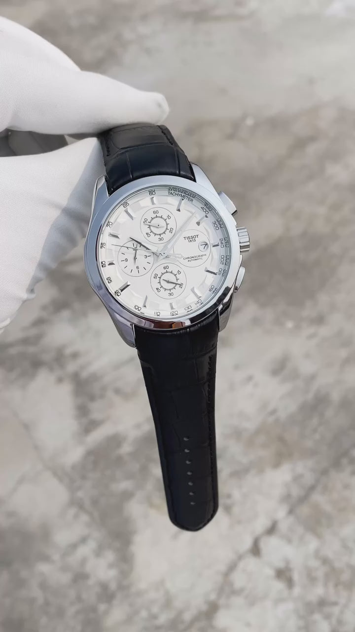 The Tissot Couturier 1853 for him is now in stock with enhanced features, including a genuine leather strap, chronograph functionality, and a durable steel case. Get it with the Tissot brand box.